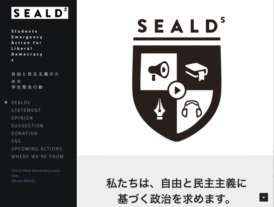 SEALDs(シールズ:Students Emergency Action for Liberal Democracy – s)は、自由で民主的な日本を守るための、学生による緊急アクションです。担い手は10代から20代前半の若い世代です。私たちは思考し、そして行動します。
