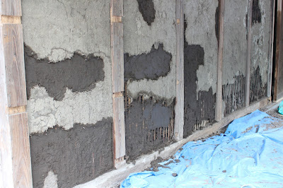 100年前の土壁を修復する新世代時代を結ぶ自然のアートだね