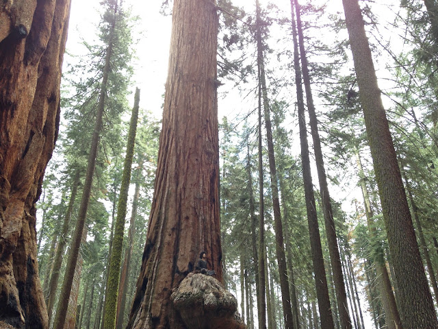 (ジャイアントセコイヤに腰をかけて瞑想)